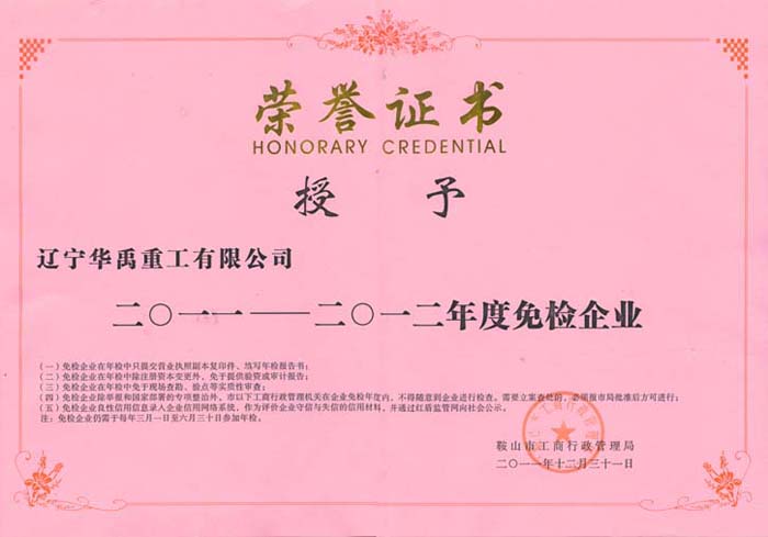 免檢企業(yè)證書