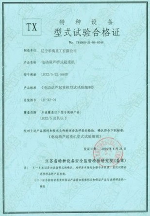 LDP電動單梁型式試驗合格證
