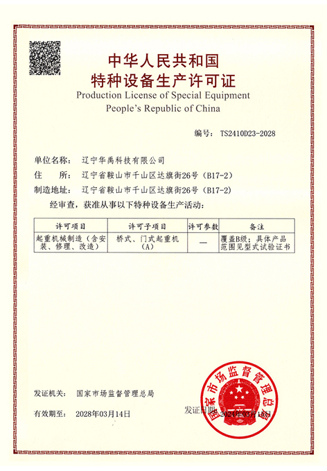 特種設(shè)備制造許可證A級
